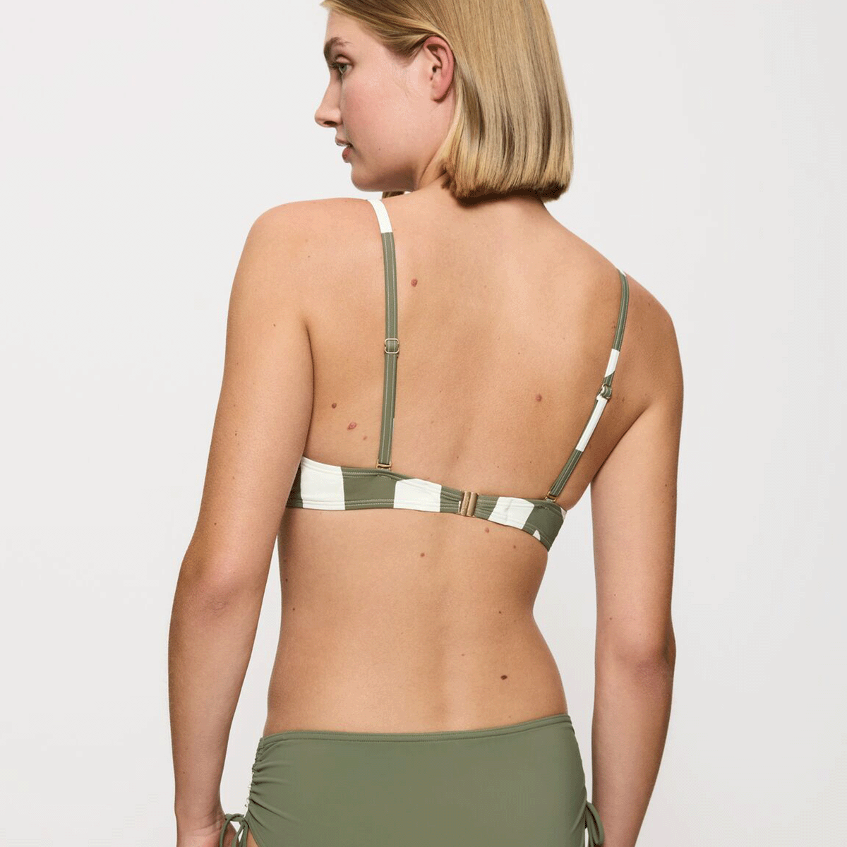For å bevare både fargene og elastisiteten i Triumph badetøyet er det viktig med riktig pleie. Klor og saltvann sliter både på hud, hår og stoff, så skyll alltid badetøyet i rent vann etter bading. På mange strender, særlig i utlandet, finnes små dusjer hvor du enkelt kan skylle bort salt og klor. Solkrem kan også skade stoffet og etterlate flekker, så påfør den før du tar på badetøyet og la den trekke godt inn i huden.